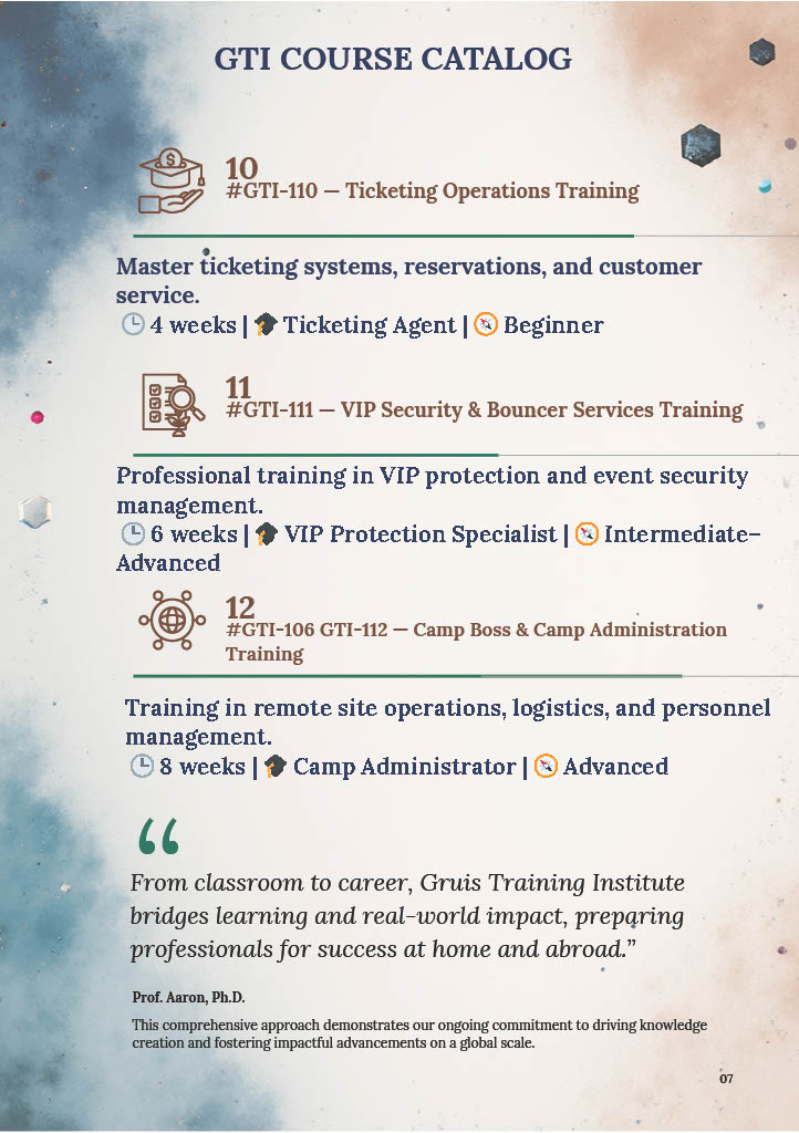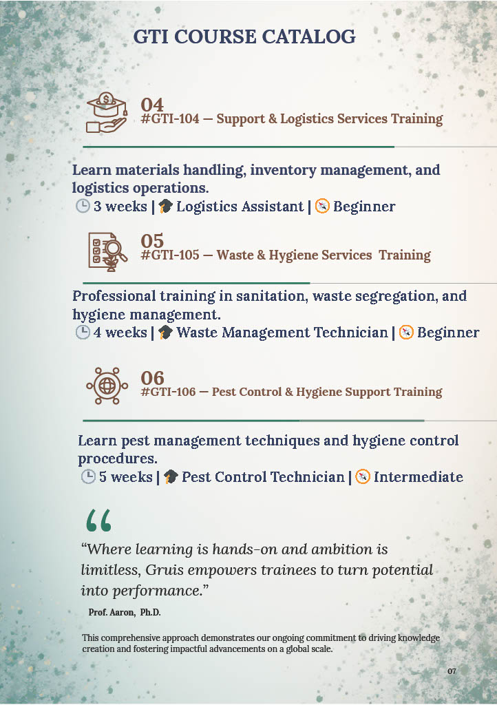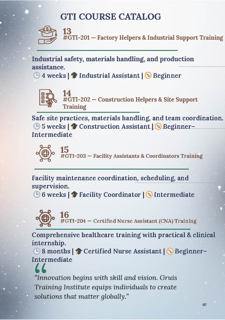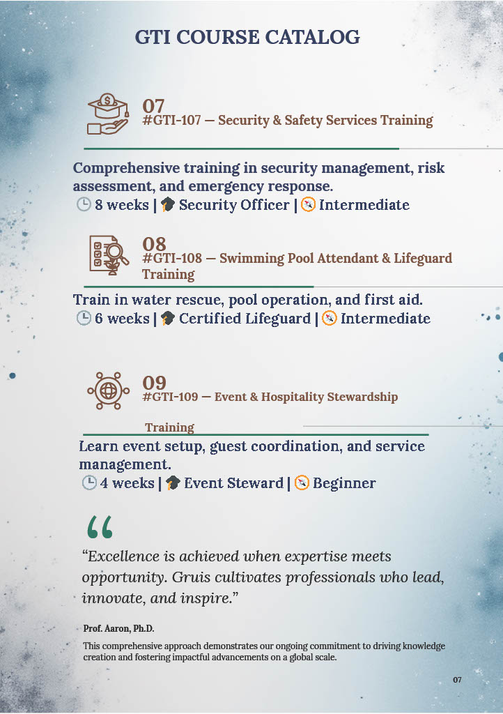 Course availability, schedules, fees, and content are subject to change without notice. While we strive to provide accurate and up-to-date information, Gruis Training Institute reserves the right to modify, cancel, or reschedule courses and programs as necessary.