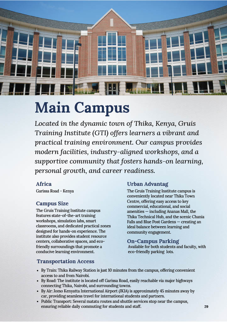 Gruis Training Institute is in the process of registration with the Technical and Vocational Education and Training Authority (TVETA), Kenya